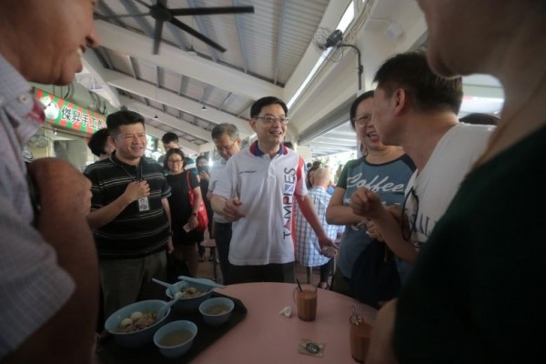 Deputy Prime Minister Heng Swee Keat meeting diners at Tampines Round Market and Food Centre in July. Before the polls, each constituency will unveil its own local manifesto which details plans for the neighbourhood, such as upcoming infrastructure projects.